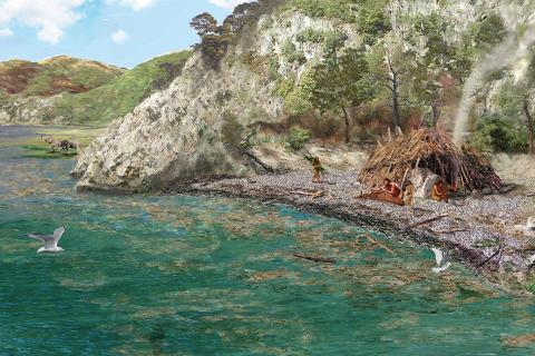 La vie dans la grotte est évoquée à partir du couloir d’accès à la grotte, l’observation du sol de fouilles permet d’appréhender le comportement de l’homme du Lazaret.